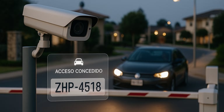 Acceso a Visitantes: Autoriza el ingreso de visitantes mediante la identificación de matrículas vehiculares, con solicitudes de autorización a través de WhatsApp.