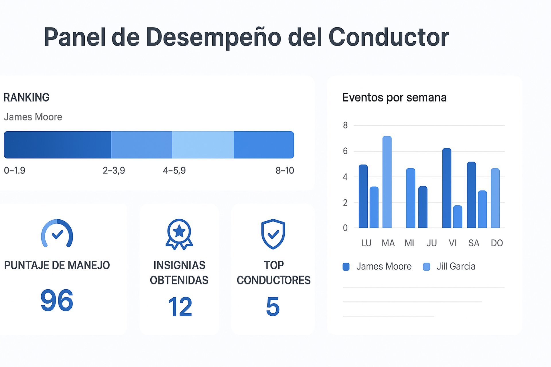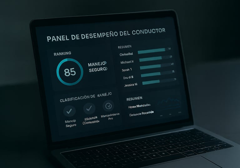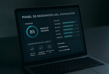 Toda la información se organiza en dashboards claros con trazabilidad completa, métricas de desempeño, análisis comparativos entre conductores y alertas predictivas para mejorar seguridad, eficiencia y toma de decisiones.